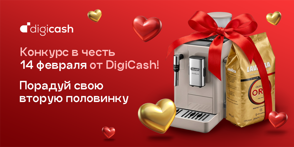 Мы это доказываем не только на словах, но и на деле! В честь Дня всех влюблённых DigiCash запускает розыгрыш стильной кофемашины, чтобы каждое утро со второй половинкой начиналось с запаха свежесваренного кофе ☕️